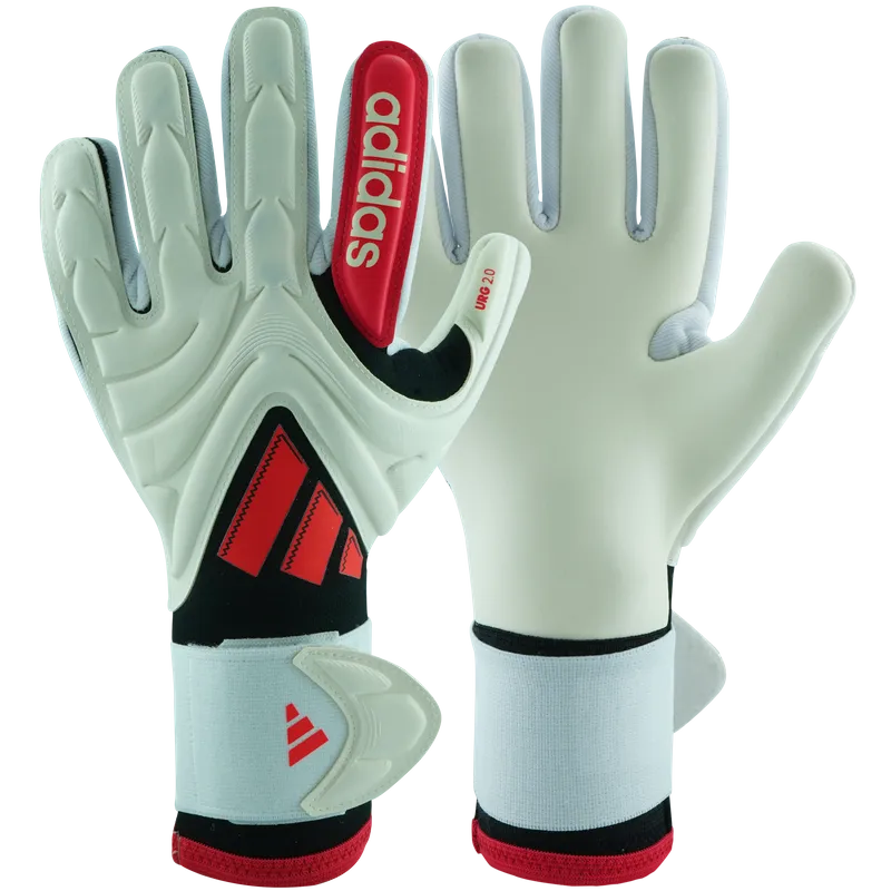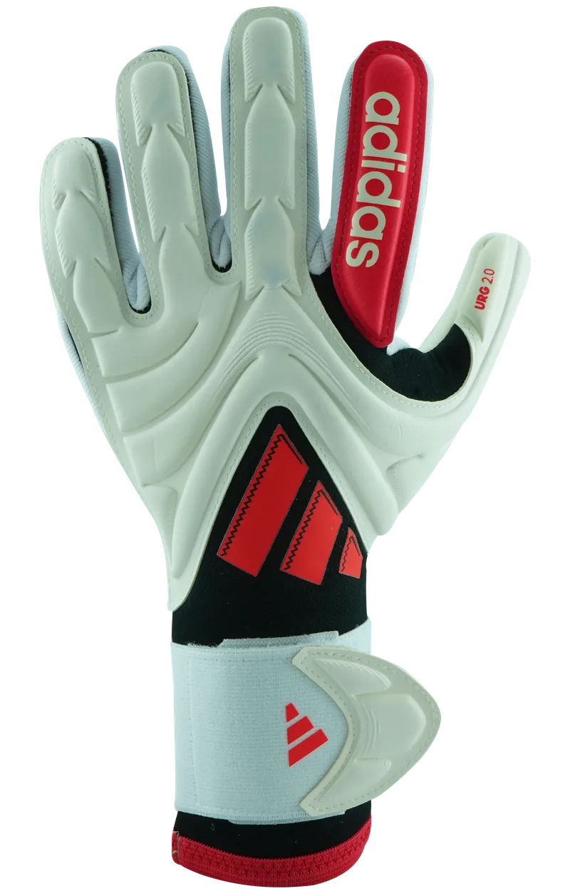 The Copa Pro goalkeeper glove from the adidas Electric Stealth pack, featuring a sleek design with vibrant electric yellow accents, sets new standards in grip and comfort. Thanks to the Finetuned Abrasion Zone, the contact surface between the palm, latex, and ball has been optimized—enhancing grip while improving durability. The black URG 2.0 contact foam provides reliable, high-performance grip in all weather conditions. A snug negative cut (NC) ensures a precise feel on the ball and a perfect fit. The Latex Mesh backhand offers a combination of stability and flexibility, while the Thumb Wrap technology increases the contact area around the thumb. The elastic wrist strap delivers secure support and enhances both comfort and freedom of movement. With the Copa Pro Electric Stealth, experience a blend of innovation, comfort, and classic design for exceptional on-field performance.